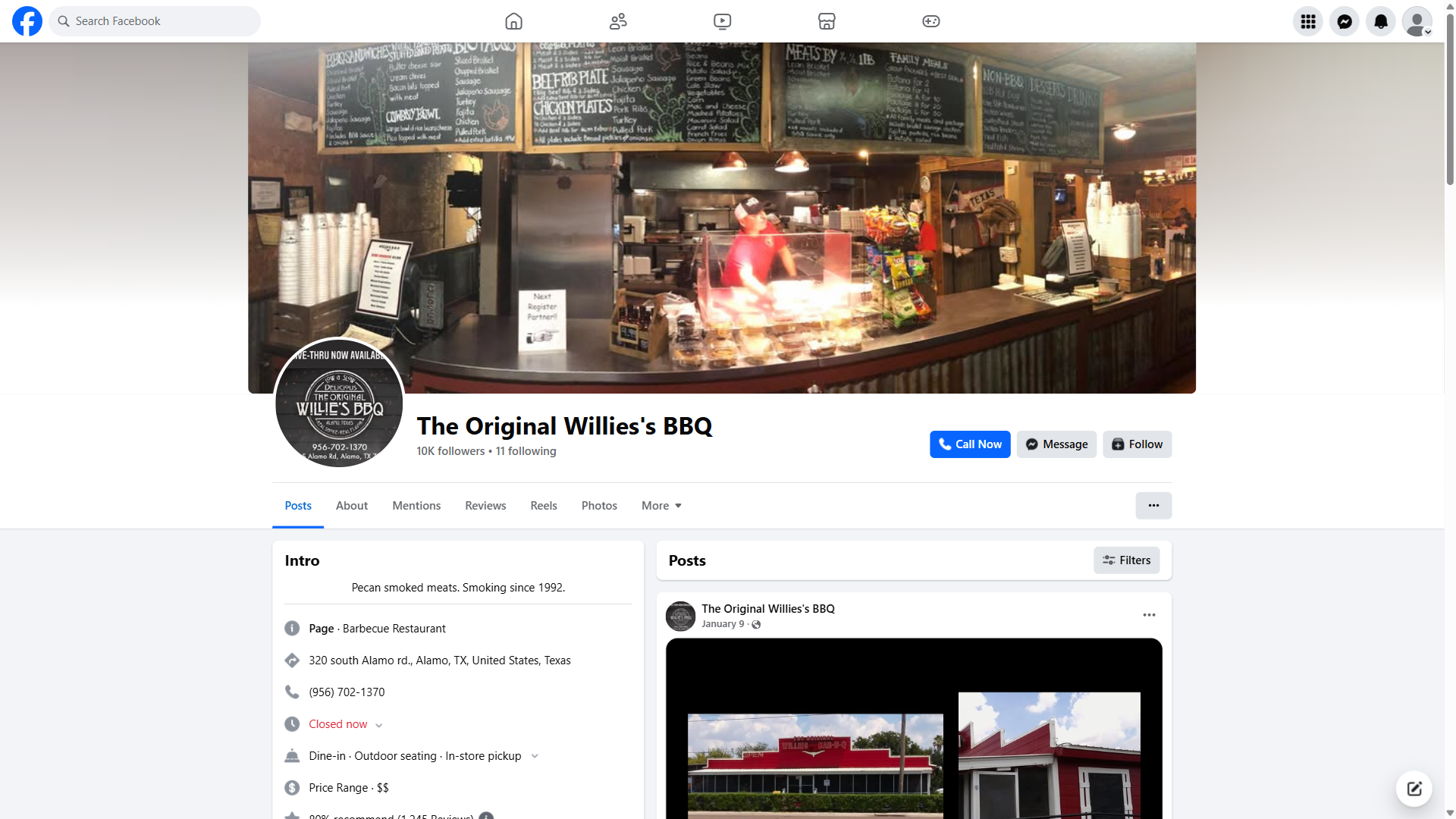 As a highly-rated restaurant with a strong online presence, The Original Willie's Bar-B-Q has built a loyal community of fans who rave about its food, service, and atmosphere. With its Facebook page serving as a hub for updates, reviews, and engagement, the restaurant is clearly committed to providing an exceptional customer experience. Whether you're a local or just passing through Alamo, The Original Willie's Bar-B-Q is a must-visit destination for anyone who loves good BBQ and a warm, welcoming atmosphere.