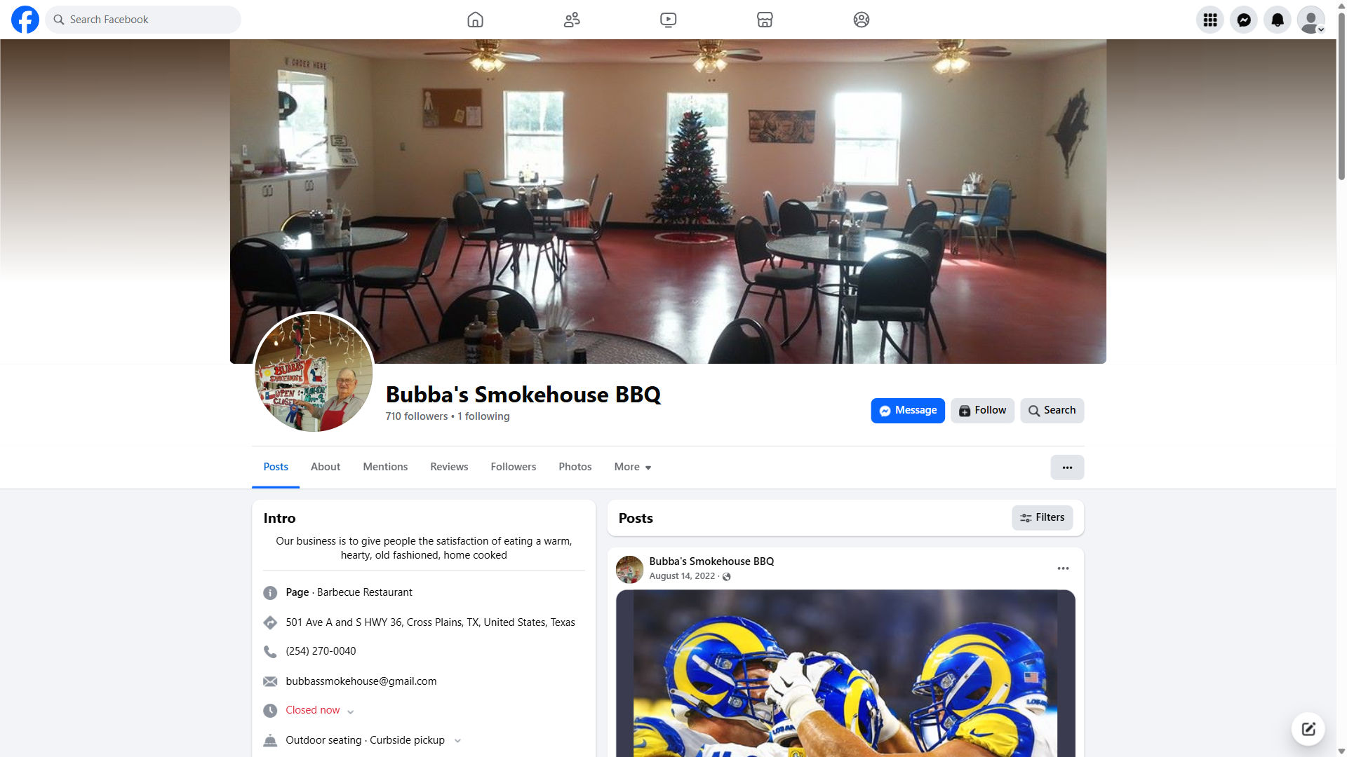 Bubba's Smokehouse BBQ is a culinary gem in the heart of Cross Plains, Texas, where the art of slow-smoking meats is taken very seriously. This beloved BBQ restaurant has earned a stellar reputation among locals and visitors alike, with an impressive 4.5-star rating and over 167 glowing reviews. The menu boasts an array of traditional BBQ favorites, including the top-rated brisket, which is consistently praised for its tender, fall-apart texture and deep, smoky flavor. Other standout dishes include the sweet potato souffle, a rich and flavorful side that's both comforting and indulgent, and the peach cobbler, which has been hailed as the best by many a satisfied customer.