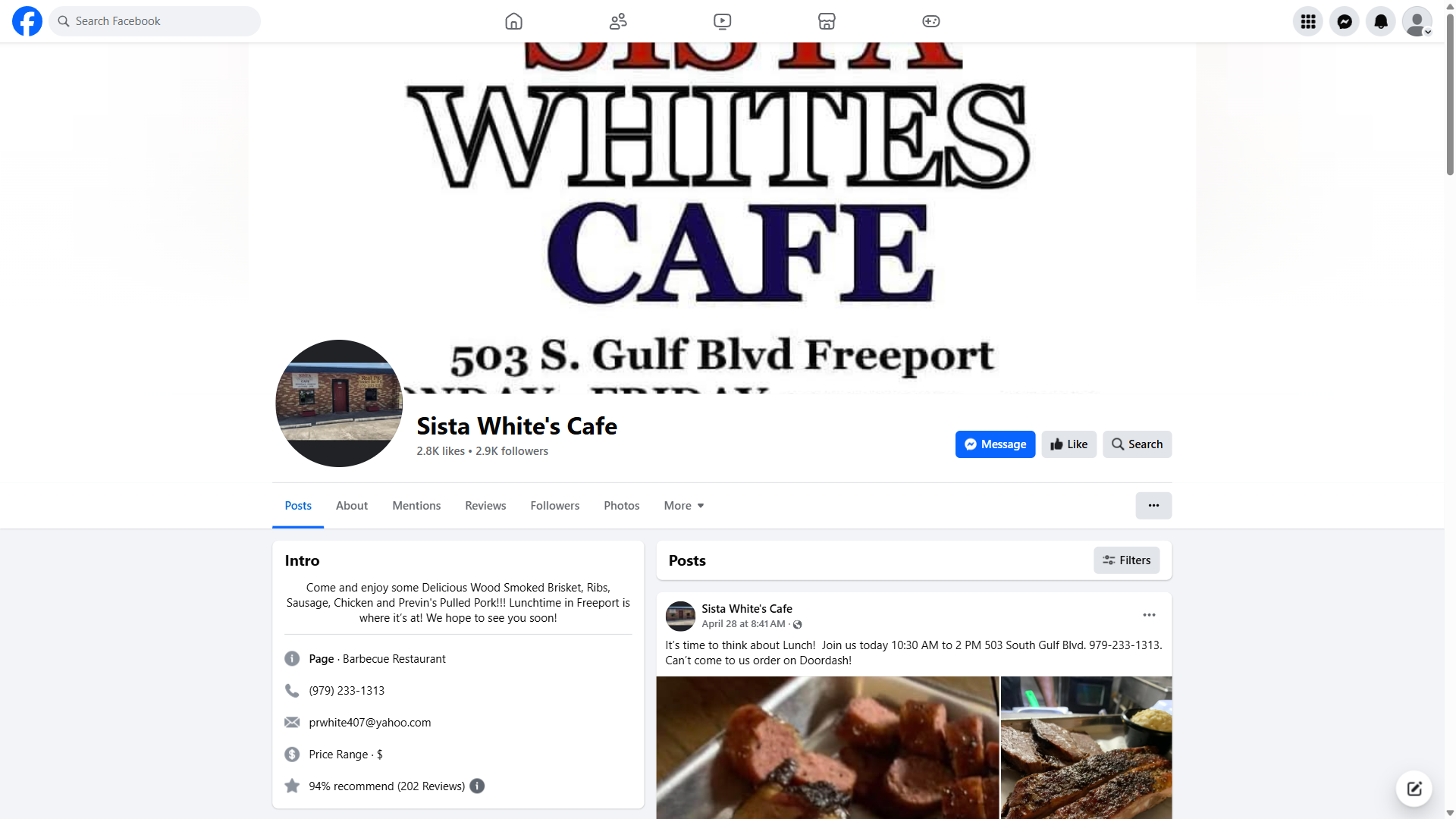 As a testament to its popularity and reputation, Sista White's Cafe has built a strong online presence, with a active Facebook page where customers can stay up-to-date on the latest news, promotions, and behind-the-scenes glimpses into the kitchen. With its loyal customer base and dedication to quality, it's clear that Sista White's Cafe is more than just a restaurant - it's a beloved institution in the Freeport community. Whether you're a BBQ aficionado or just looking for a delicious meal, Sista White's Cafe is sure to satisfy your cravings and leave you wanting more.