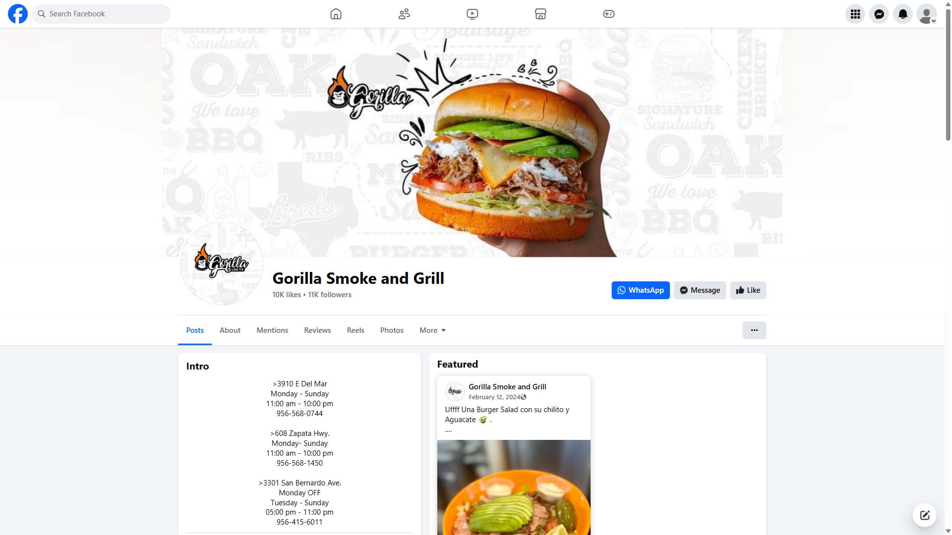 The restaurant's reputation is built on its ability to deliver exceptional service and food quality, with reviewers consistently praising the attention to detail and care that goes into every dish. From the freshly prepared burgers to the expertly smoked meats, every aspect of the dining experience at Gorilla Smoke & Grill (South) is designed to leave a lasting impression. With its strong social media presence and active engagement with customers, the restaurant is clearly dedicated to building a community of fans and providing a personalized experience for every guest. Whether you're a local or just visiting Laredo, Gorilla Smoke & Grill (South) is a must-visit destination for anyone looking for authentic, delicious BBQ and exceptional service.