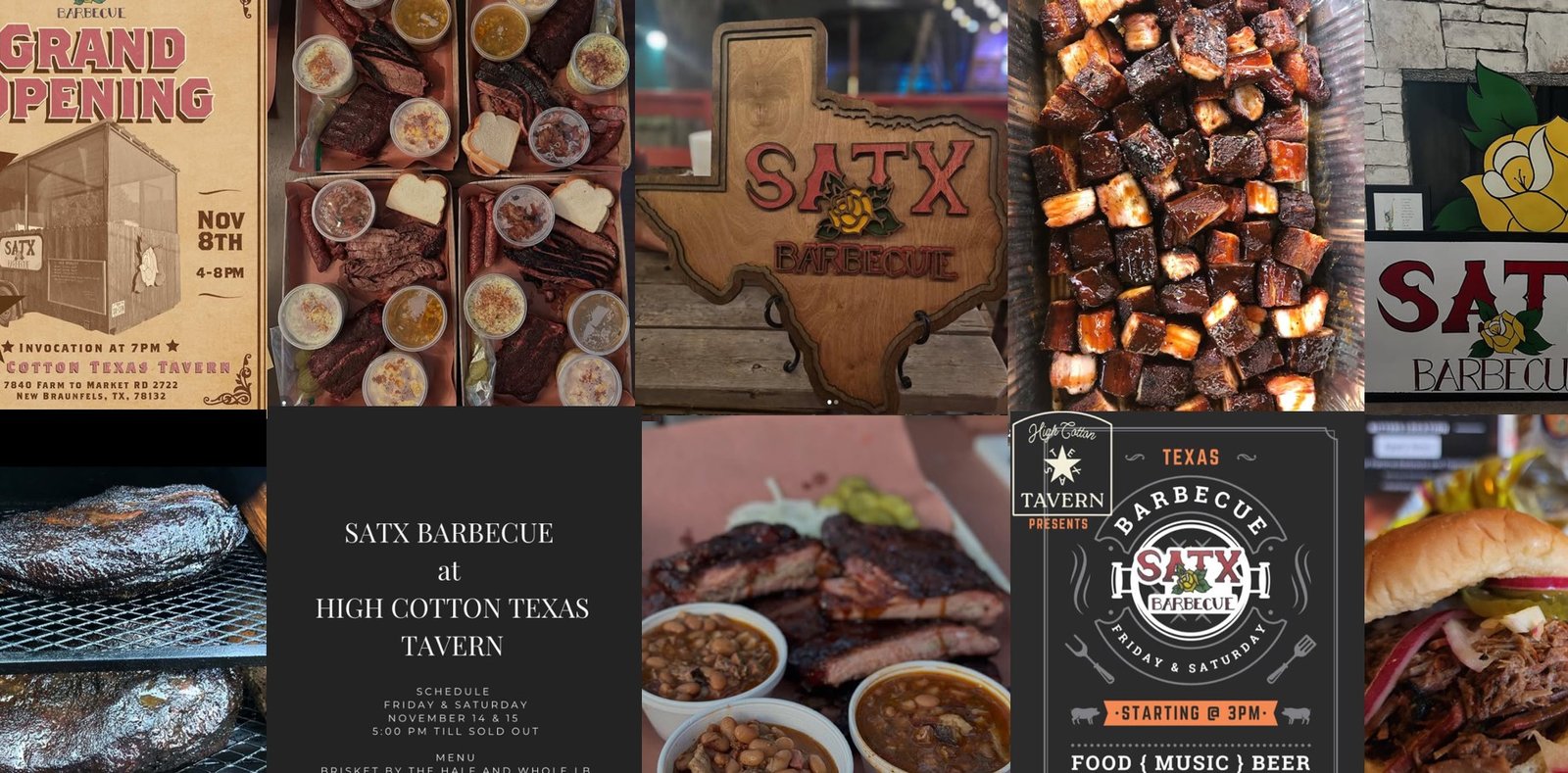 SATX Barbecue is a Friday and Saturday night draw at High Cotton Texas Tavern in the Canyon Lake area, serving barbecue alongside the venue’s live country music lineup. The operation is led by pitmaster Pete Rangel, and it runs like a true Hill Country pop up. It starts in the evening and goes until the food is sold out, so arriving early is part of the deal.
