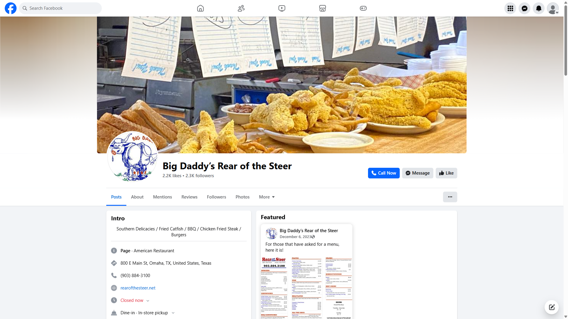Tucked away in Omaha, TX, Rear of the Steer is a BBQ lover's paradise that has garnered a loyal following and critical acclaim. With an impressive 4.5-star average rating from over 533 reviews, this unassuming eatery has proven itself to be a diamond in the rough, worth seeking out for its exceptional cuisine and warm hospitality. The menu boasts an array of mouthwatering options, including the signature chicken fried steak, which has been hailed as the "best ever" by numerous patrons. Other favorites include the fresh cut fries, sweet potato fries, and okra, all of which are expertly prepared to satisfy even the most discerning palates.