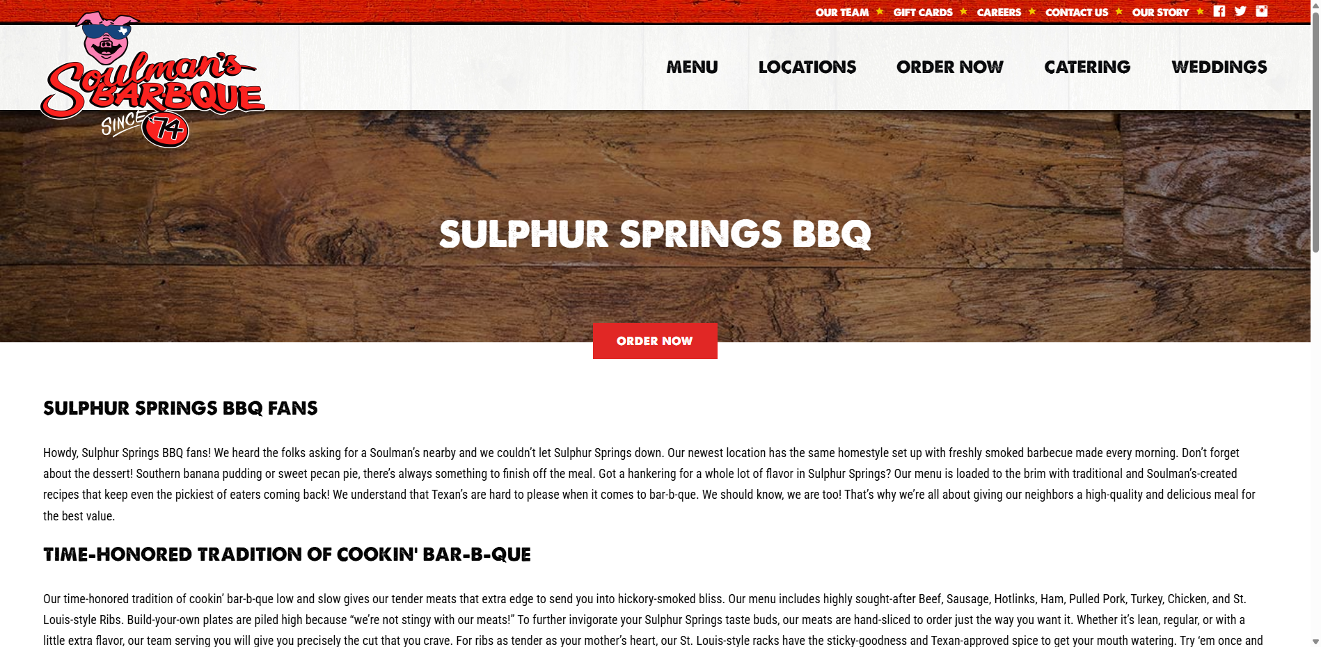 Soulman's Bar-B-Que is a beloved BBQ joint in Sulphur Springs, Texas, that has been winning over hearts with its classic Texas-style BBQ. Located on South Broadway Street, this restaurant has become a staple in the community, attracting visitors from all over with its promise of tender, smoky meats and warm hospitality. The menu boasts an array of mouth-watering options, including chicken, sausage, and their famous Hot Links, which have been highly praised by reviewers. Whether you're in the mood for something classic and comforting or adventurous and new, Soulman's has got you covered.