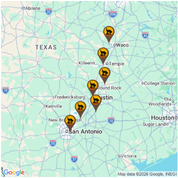 One of the most important BBQ corridors in Texas. This route connects major cities with some of the most influential BBQ styles in the state.